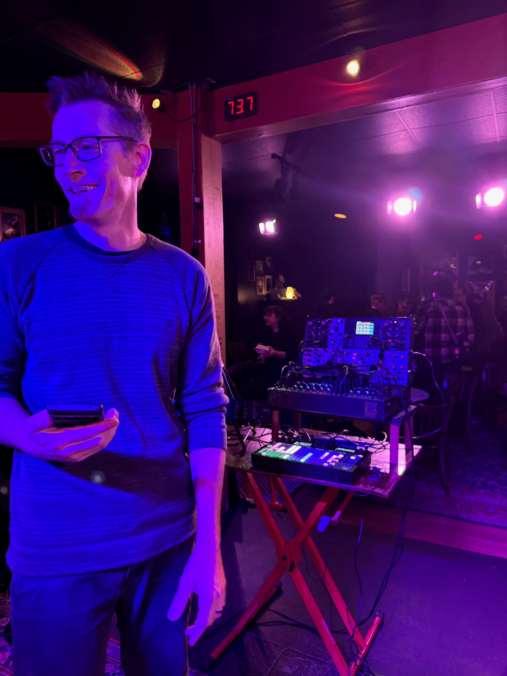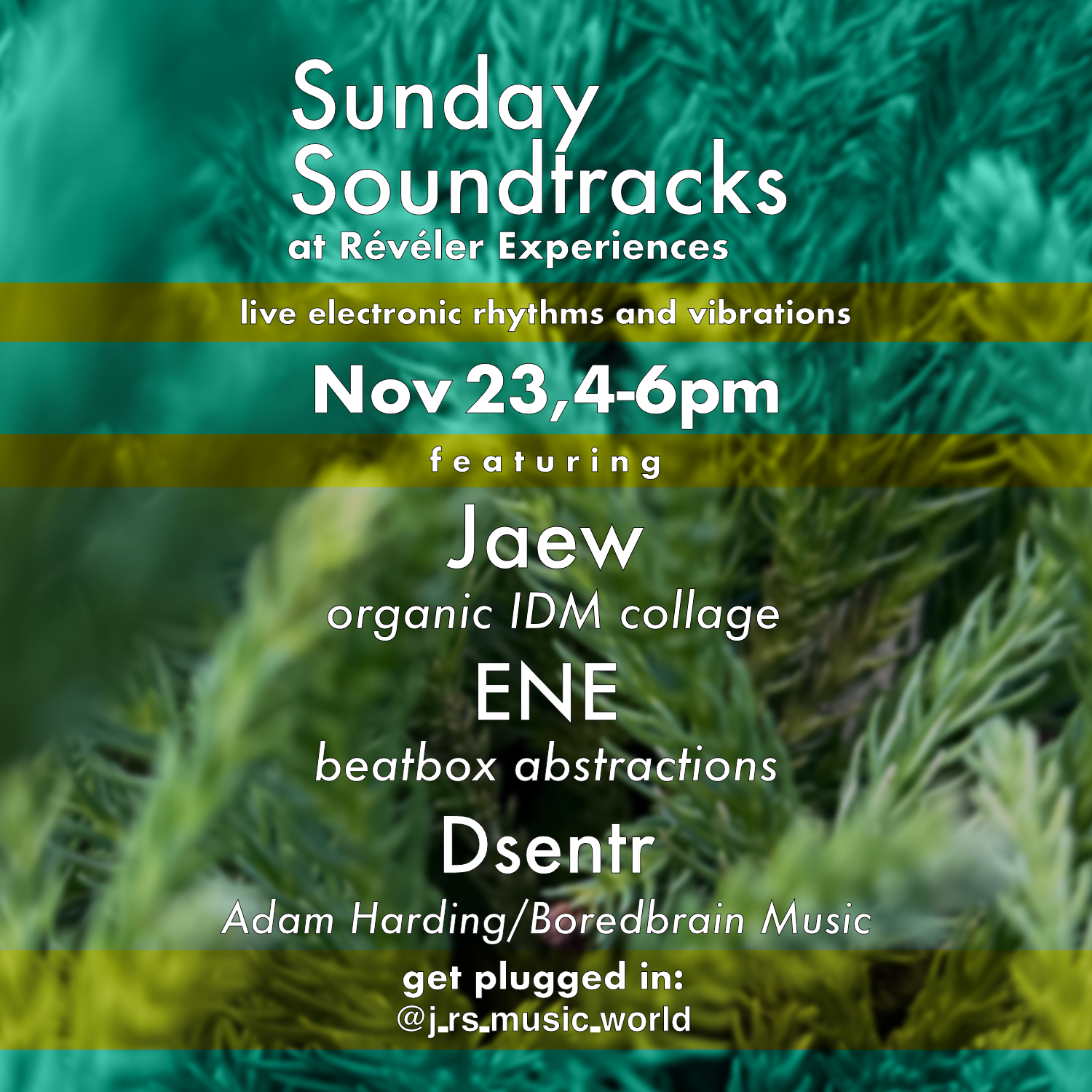 To round out the year, our thirteenth episode featured old and new friends. Opening was the live debut of Jaew, who gave us an energetic set of drum and bass and IDM-inspired electronica. It left us wanting more, and we can't wait to invite her back. Next, ENE returned to the Sunday Soundtracks stage, this time in solo mode and it was fun to watch him improvise. Rounding out the afternoon was Adam Harding, aka Dsentor. The Boredbrain boss showcased his distinctive gear while regaling us with a progressive techno set worthy of a late night in Berghain.